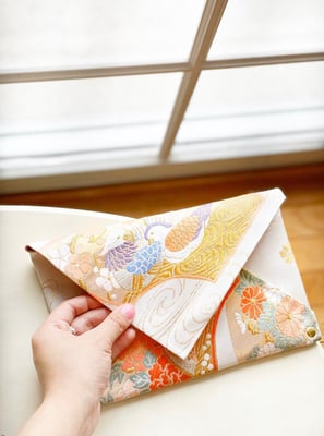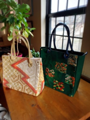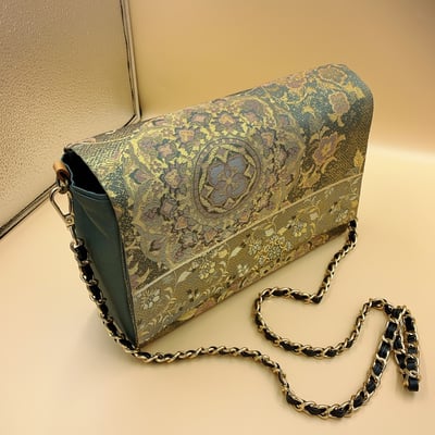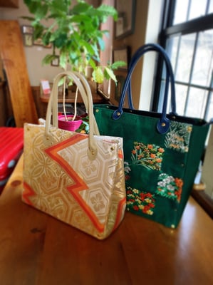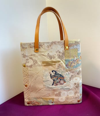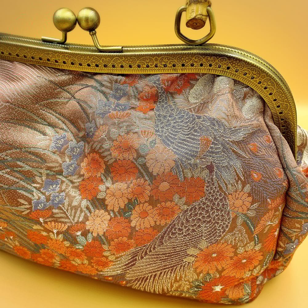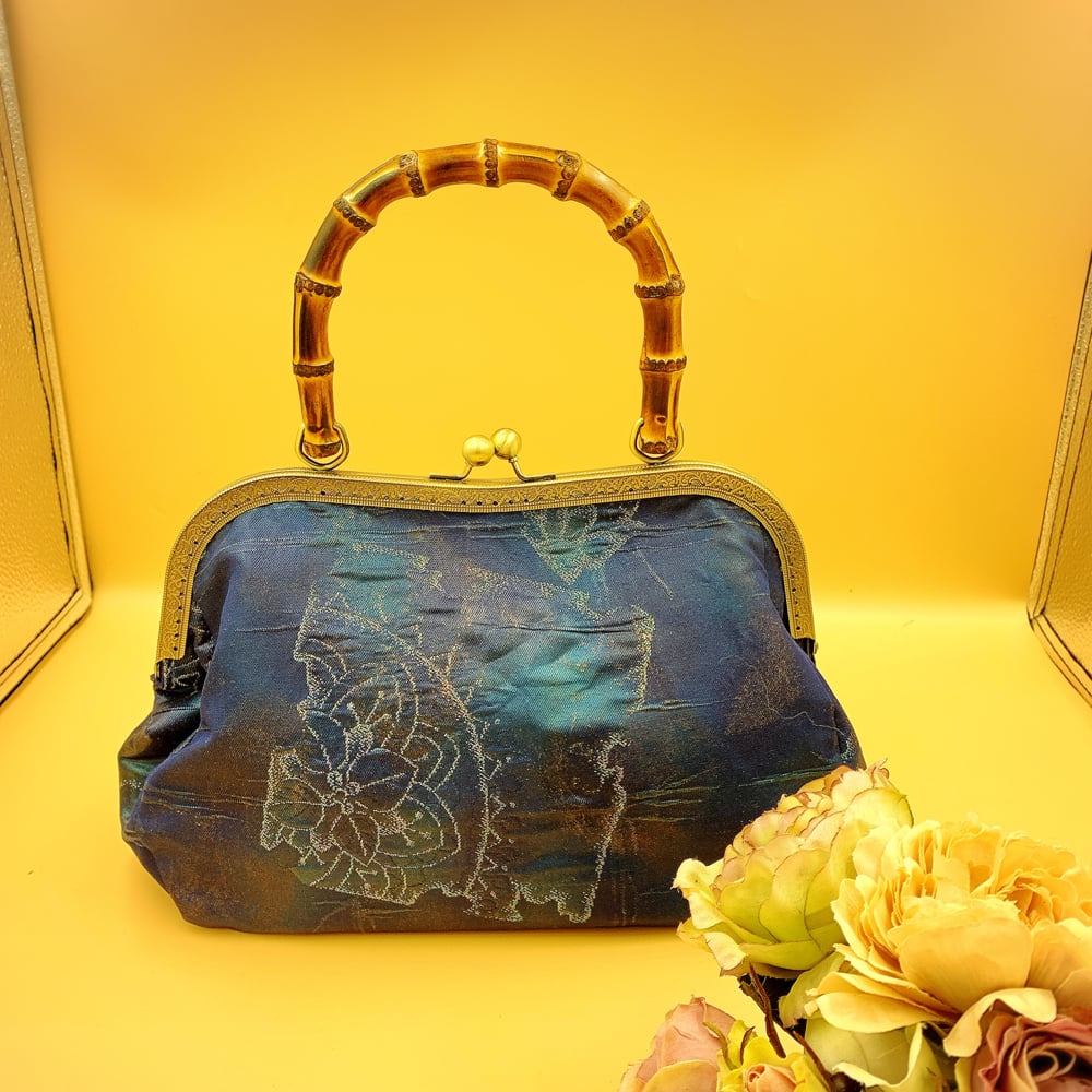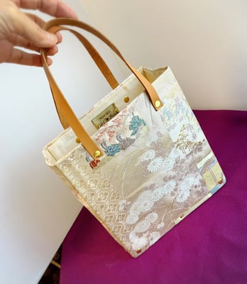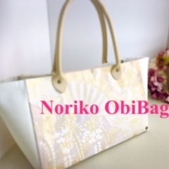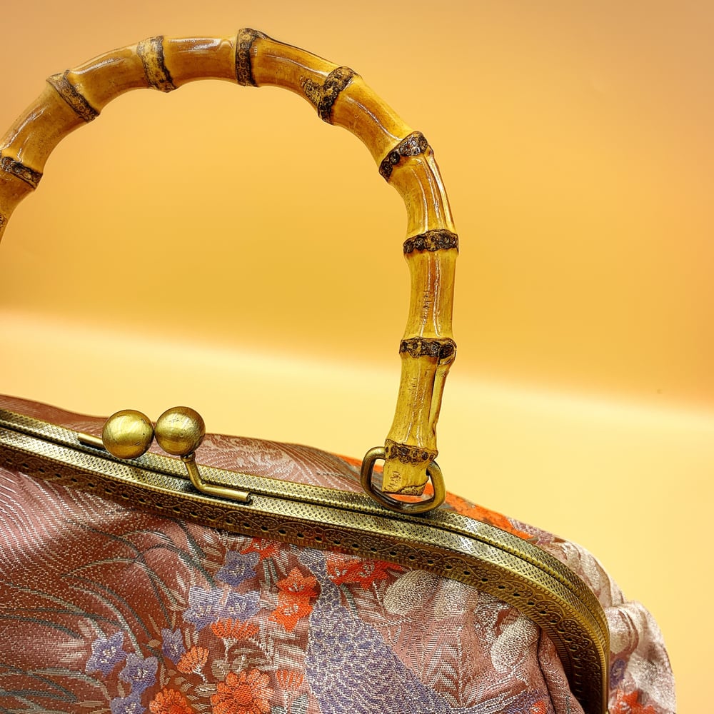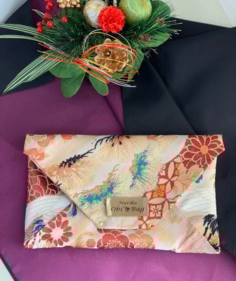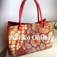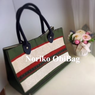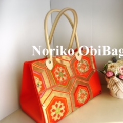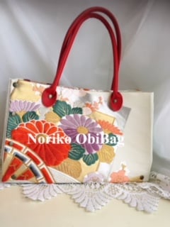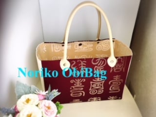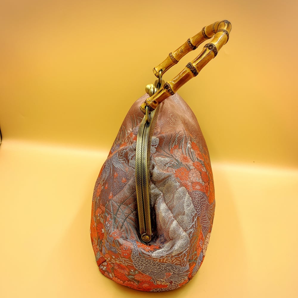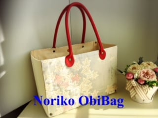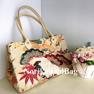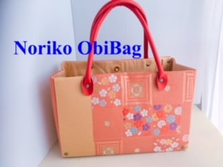NorikoObiBagの代表的デザイン。最も人気の帯バッグ。ハンドバッグとして和装洋装に使えます。利休バッグより大きく財布 携帯 ポーチなど必要品が収まります