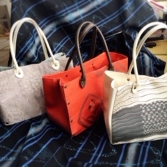 「NorioObiBag」では縫わないで数寄屋袋を作ります。