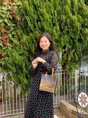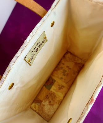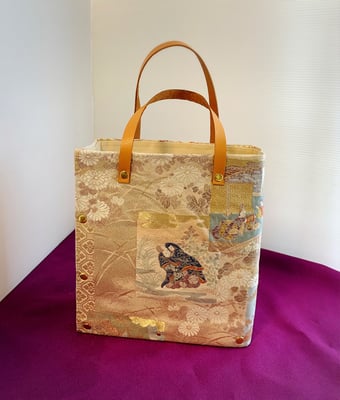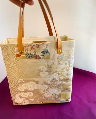 Using a metal mouth and a silk Obi belt, finish it in a high-class bag.