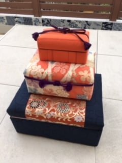 和のインテリア桐箱レッスンは 使用する生地を高級反物【正絹・大島紬・紬】にこだわり 和室にも 洋室リビングにも合う桐箱を作ります